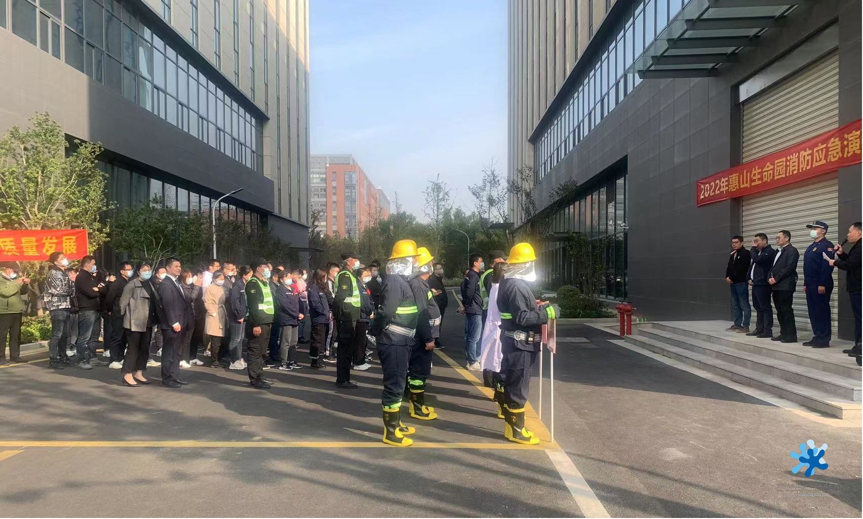 11月9日是第31個(gè)“全國消防日”,今年消防宣傳月的主題是“抓消防安全,保高質(zhì)量發(fā)展”;11月15日下午,惠山生命園2022年消防應(yīng)急演練在總部經(jīng)濟(jì)集聚區(qū)泛生子公司大樓西側(cè)廣場舉行,園區(qū)安全領(lǐng)導(dǎo)小組成員及企業(yè)安全員代表、泛生子生物員工、金科物業(yè)工作人員近100人參加演練,惠山經(jīng)開區(qū)、惠山區(qū)消防救援大隊(duì)相關(guān)專家領(lǐng)導(dǎo)蒞臨給予現(xiàn)場指導(dǎo)。
