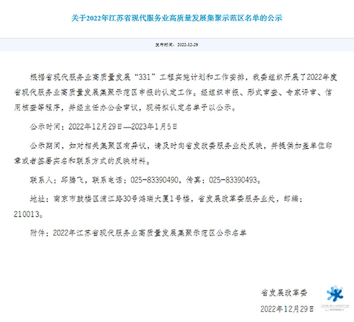日前,省發(fā)改委關于2022年江蘇省現(xiàn)代服務業(yè)高質量發(fā)展集聚示范區(qū)名單的公示結束,全省共30家單位獲得認定,惠山生命園作為無錫唯一入選。