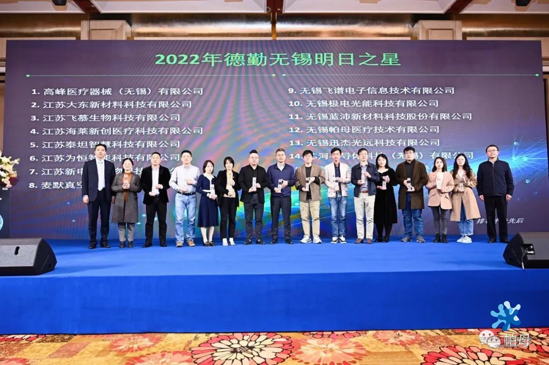 2023年4月3日,由無(wú)錫經(jīng)濟(jì)開(kāi)發(fā)區(qū)與德勤中國(guó)聯(lián)合主辦,無(wú)錫雪浪小鎮(zhèn)未來(lái)園區(qū)協(xié)辦,“2022德勤無(wú)錫高科技高成長(zhǎng)20強(qiáng)及明日之星”頒獎(jiǎng)典禮在君來(lái)世尊酒店隆重舉行,榮獲20強(qiáng)和明日之星的35家企業(yè)負(fù)責(zé)人出席接受授獎(jiǎng)?;萆缴鼒@一舉囊括頒獎(jiǎng)項(xiàng)目的1/7,其中百泰克生物上榜2022無(wú)錫高科技高成長(zhǎng)20強(qiáng),位列第4,高峰醫(yī)療、海萊新創(chuàng)、麥默真空和帕母醫(yī)療同時(shí)入選明日之星。