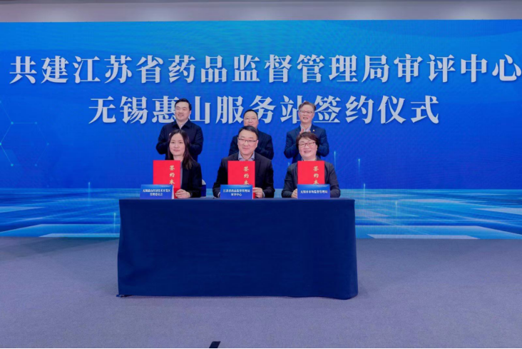 服務站揭牌的同時,省藥監(jiān)局審評中心、市市場局與惠山經開區(qū)管委會三方戰(zhàn)略合作進行了簽約,通過建立常態(tài)化交流機制、明確各方工作職責、成立領導小組等具體舉措建立戰(zhàn)略合作,為服務站的全面履職提供保障;此外,戰(zhàn)略合作將作為三方黨建組織“1+1+1”結對共建活動的補充,結合“服務高質量發(fā)展先鋒行動隊”、“青年文明號”的創(chuàng)建活動打造服務品牌,為惠山區(qū)生物醫(yī)藥產業(yè)領取發(fā)展提供專業(yè)支持。